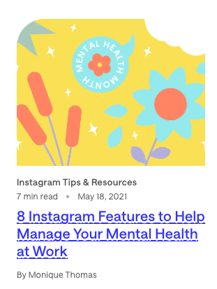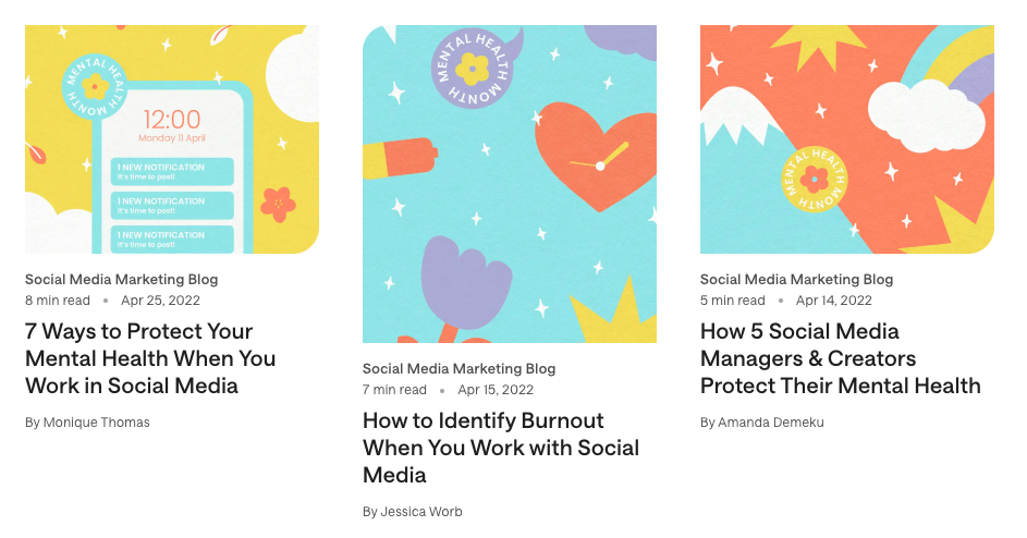 Aside from honouring and protecting our mental wellbeing at work, I also implemented a strong content pillar on mental health awareness into our content strategy. At Later, we served a community of small business owners, creators, and social media managers — all communities that have felt burnout due to social media.